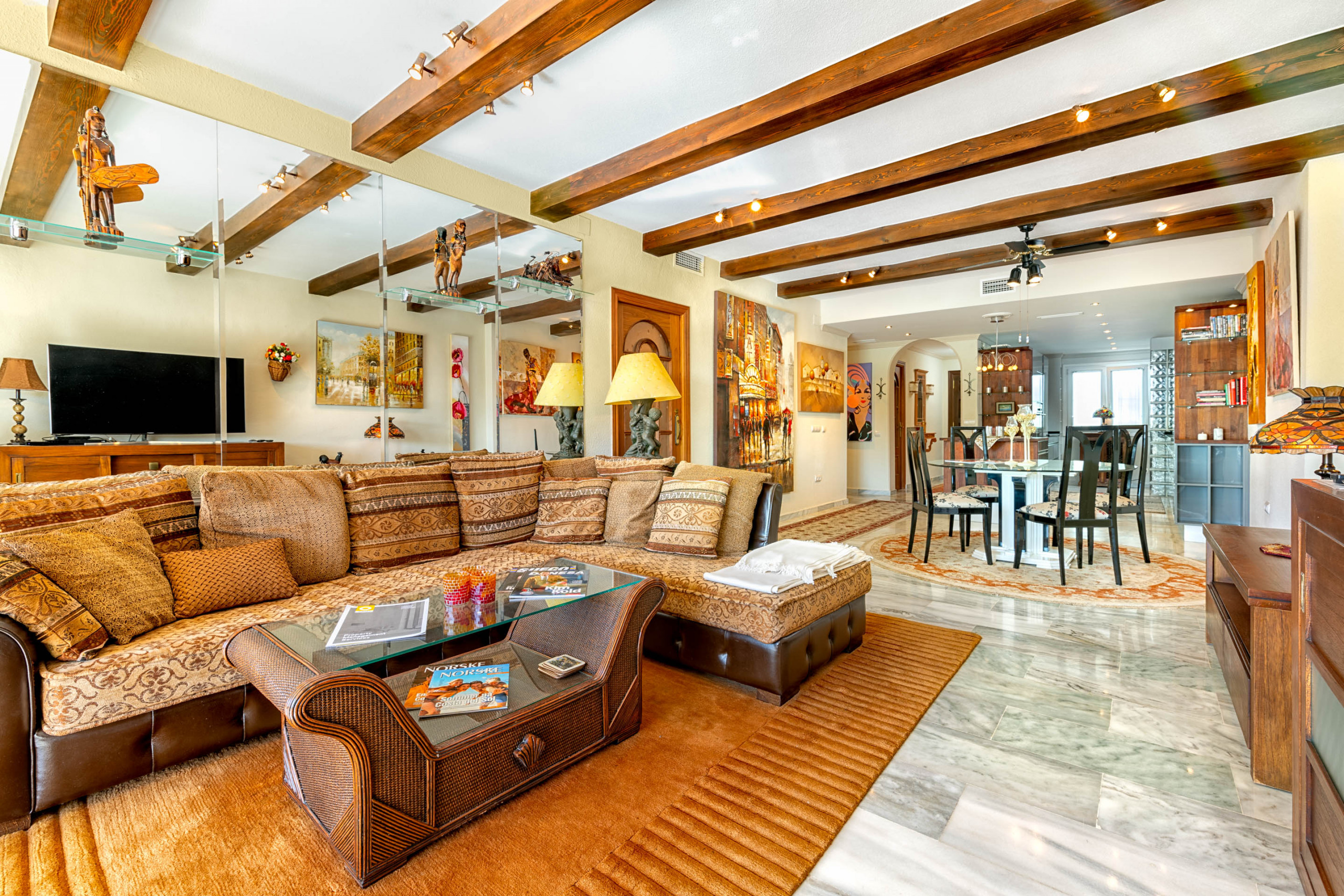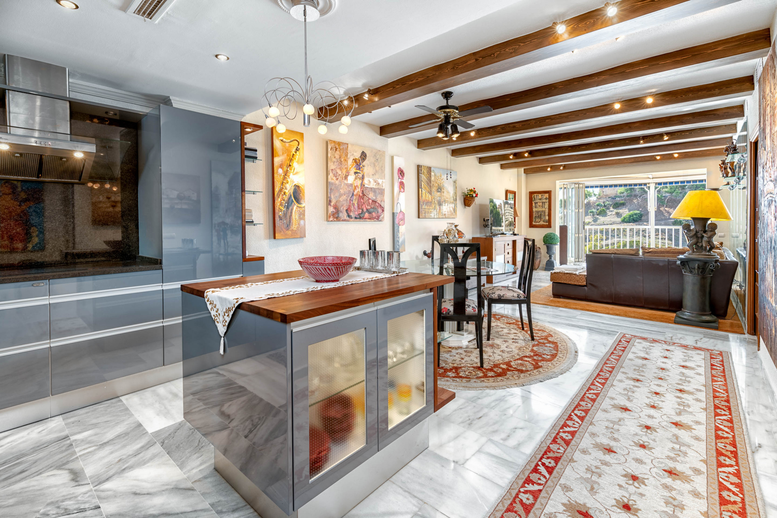 El apartamento vacacional incluye un amplio salón, que junto con su moderna y completa cocina de estilo abierto, culmina en una amplia terraza semicircular cerrada con una galería acristalada, que permite disfrutarla durante todo el año y la convierte en un refugio perfecto para días más soleados del verano y una estancia perfecta durante el invierno. Las vistas desde la terraza al Castillo, al Parque Fluvial y al Mar Mediterráneo son privilegiadas.