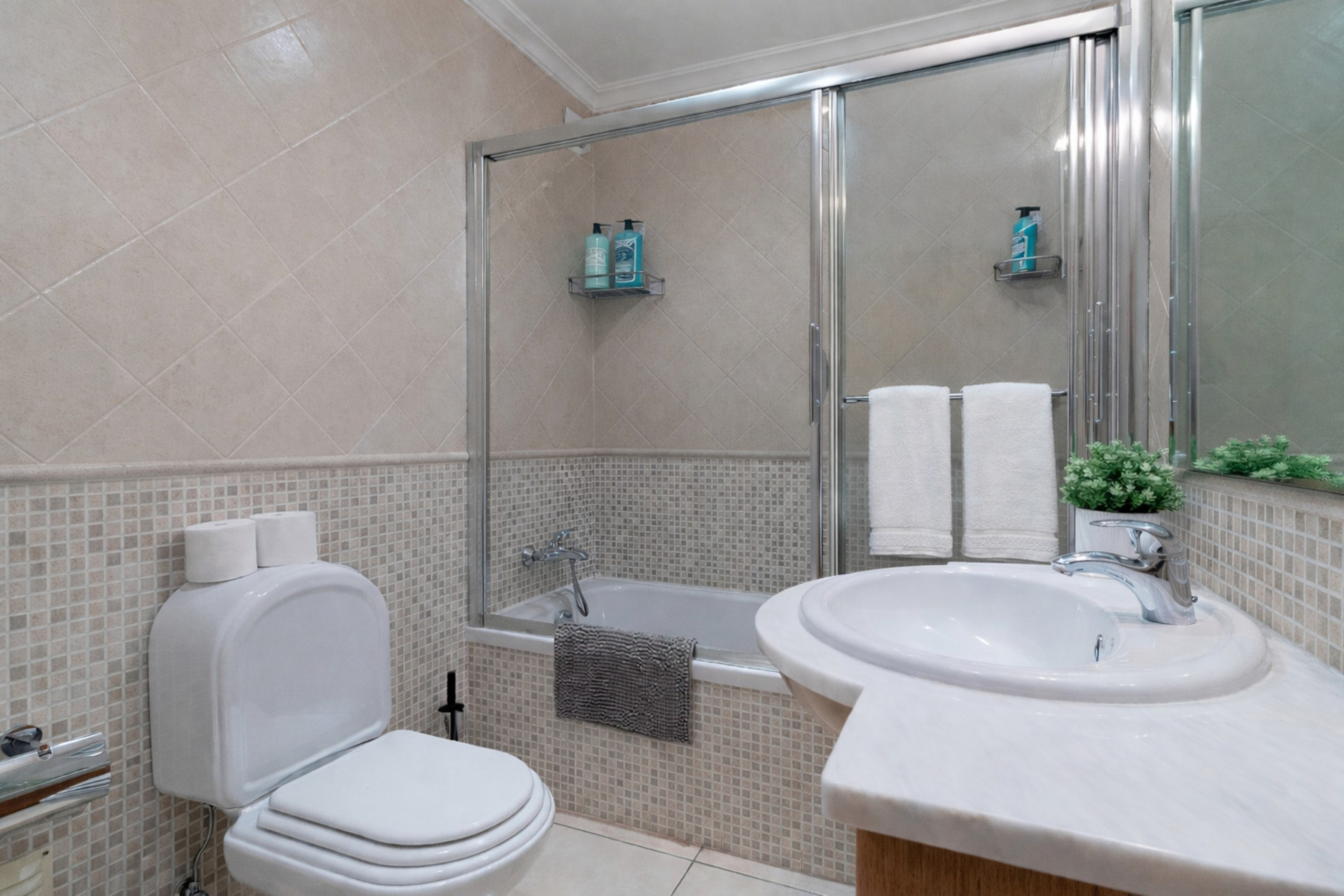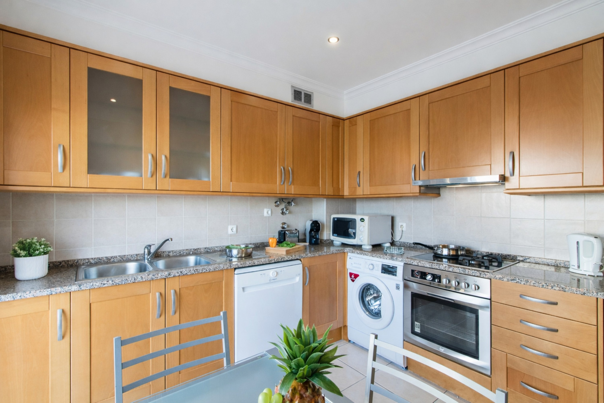 O apartamento dispõe de dois quartos com ar condicionado (um com cama de casal e outro com duas camas individuais), três casas de banho (uma com banheira, uma com duche e um WC social), cozinha totalmente equipada com máquina de lavar loiça e roupa, forno, micro-ondas e restantes utensílios essenciais, sala com ar condicionado, zona de refeições, televisão e ligação Wi-Fi.
