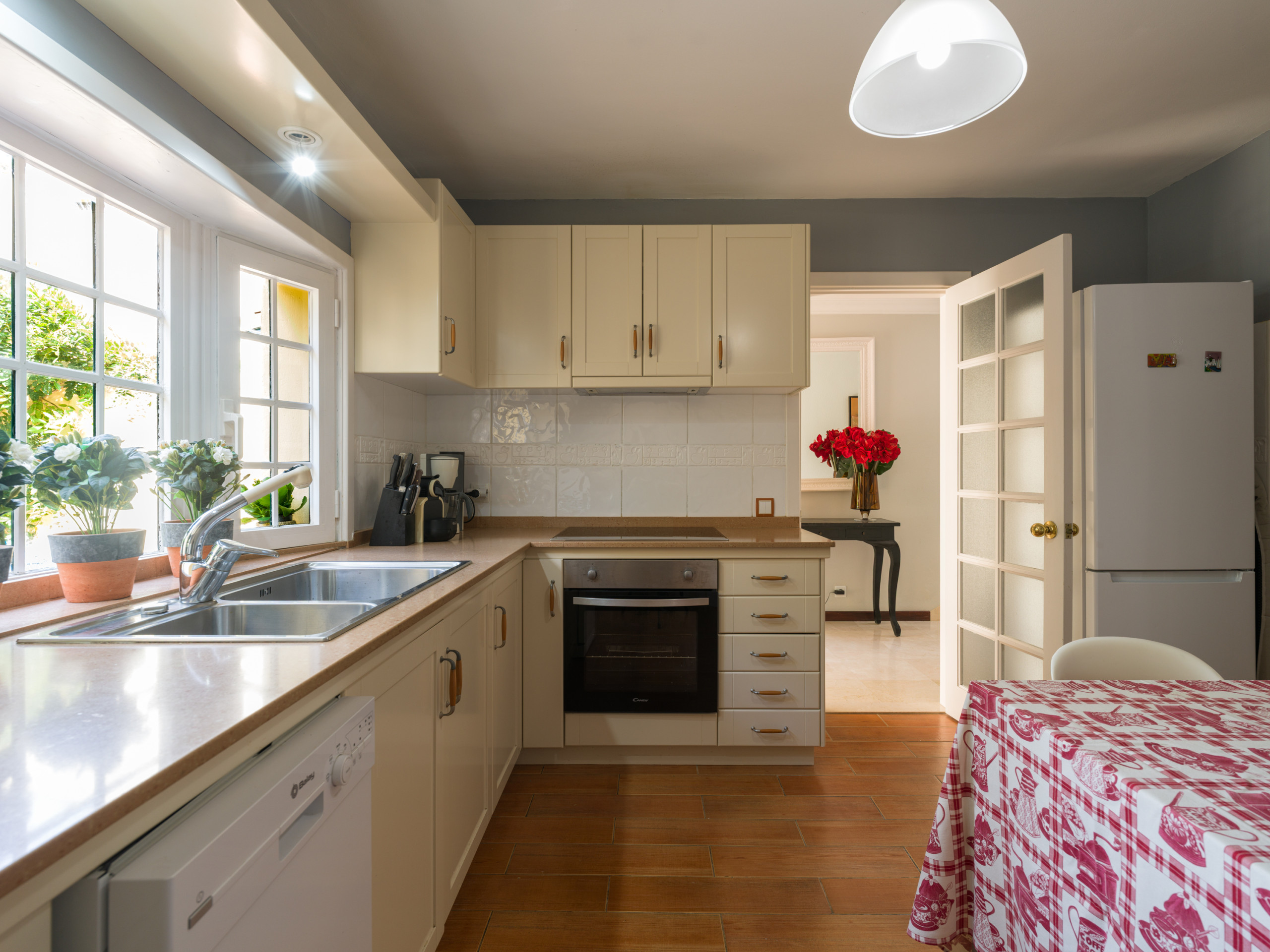 A cozinha, completamente equipada e independente, inclui eletrodomésticos de última geração como máquina de lavar, secador, máquina de lavar louça, forno, micro-ondas, máquina de café, torradeira e chaleira. Conta com uma zona de cozedura de vitrocerâmica e todos os utensílios necessários para preparar refeições deliciosas.