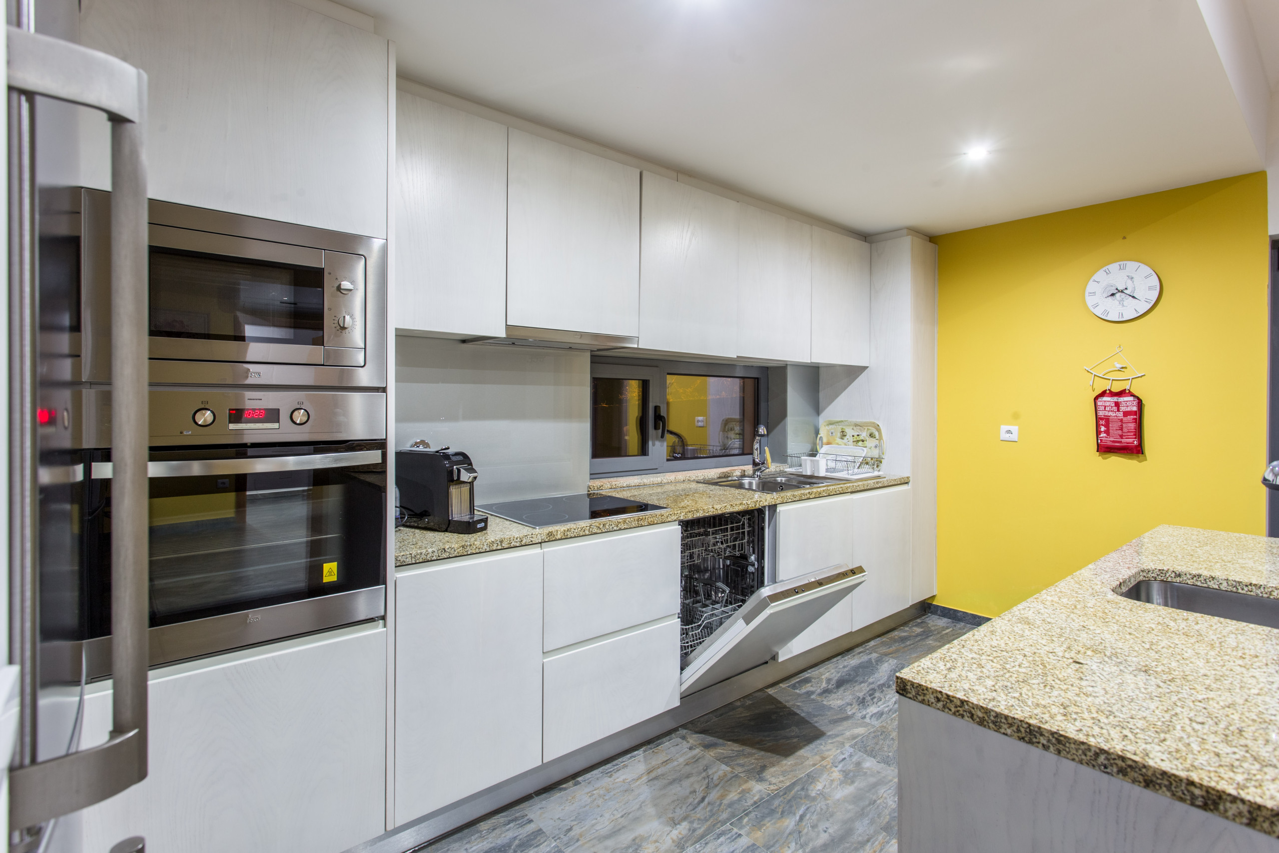 Кухня, оснащена индукционной плитой, оборудовано холодильник, микроволновая печь, духовка, морозильная камера, посудомоечная машина, столовые приборы, кухонная утварь, кофеварка, фритюрницей, тостер, Чайник и Соковыжималка.