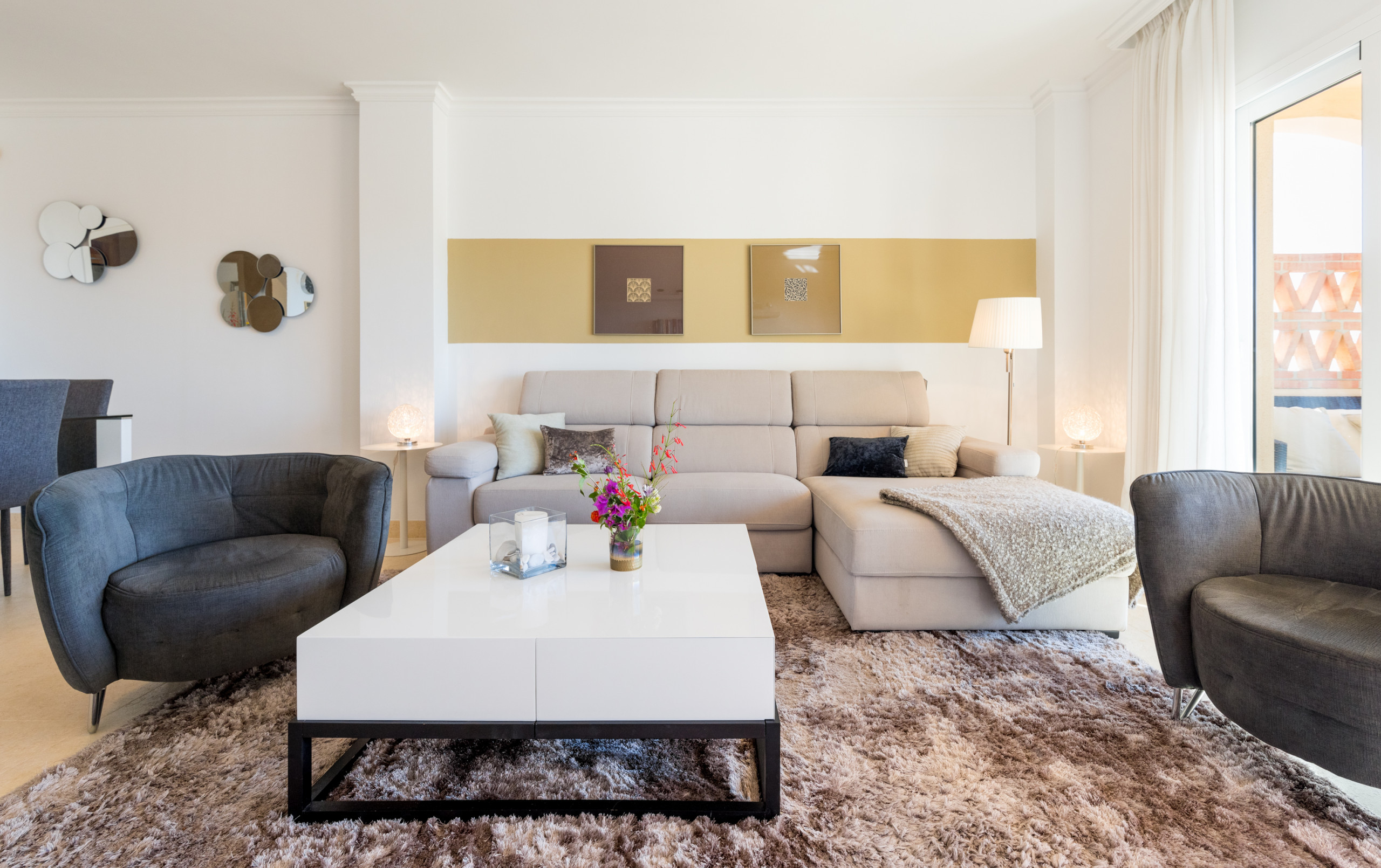 The apartment is 100 m² and is really nicely furnished with a Scandinavian touch and contains a fully equipped kitchen, 2 bedrooms, 2 bathrooms and a cosy southeast oriented terrace with amazing views.