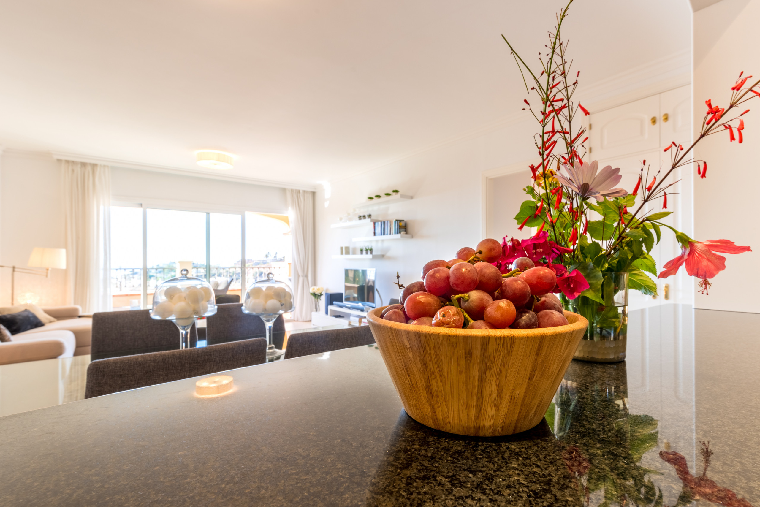 The apartment is 100 m² and is really nicely furnished with a Scandinavian touch and contains a fully equipped kitchen, 2 bedrooms, 2 bathrooms and a cosy southeast oriented terrace with amazing views.