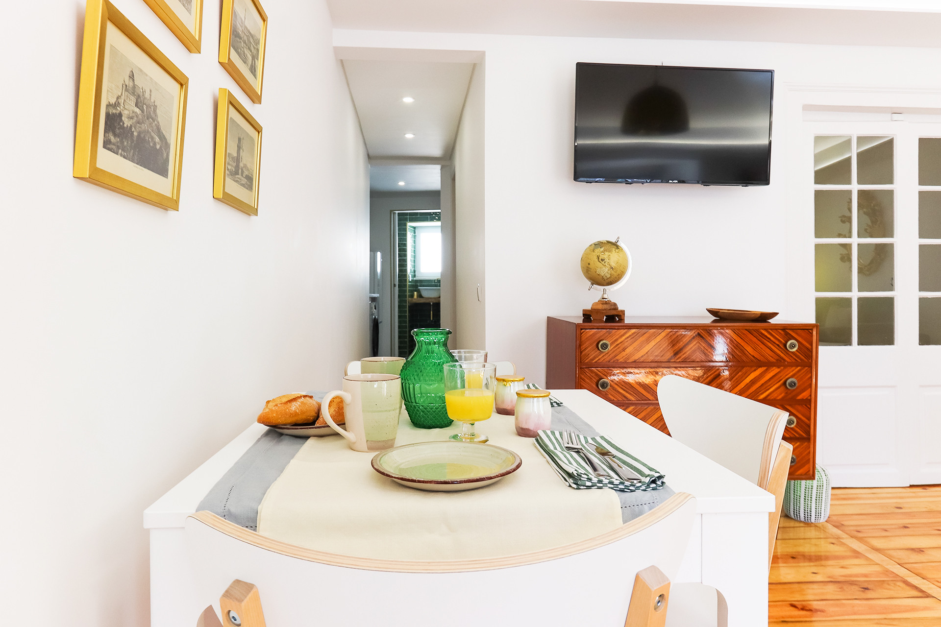 This charming 1-bedroom apartment in Lisbon accommodates up to 4 guests and spans 45 m². Situated near Castelo de S. Jorge in the medieval neighborhood, it is conveniently close to public transport. The apartment features amenities such as a washing machine, iron, Wi-Fi, hair dryer, balcony, electric heating, air conditioning, and a fan. The independent kitchen, equipped with both gas and electric appliances, includes a refrigerator, microwave, freezer, dishes/cutlery, kitchen utensils, coffee machine, toaster, and kettle.