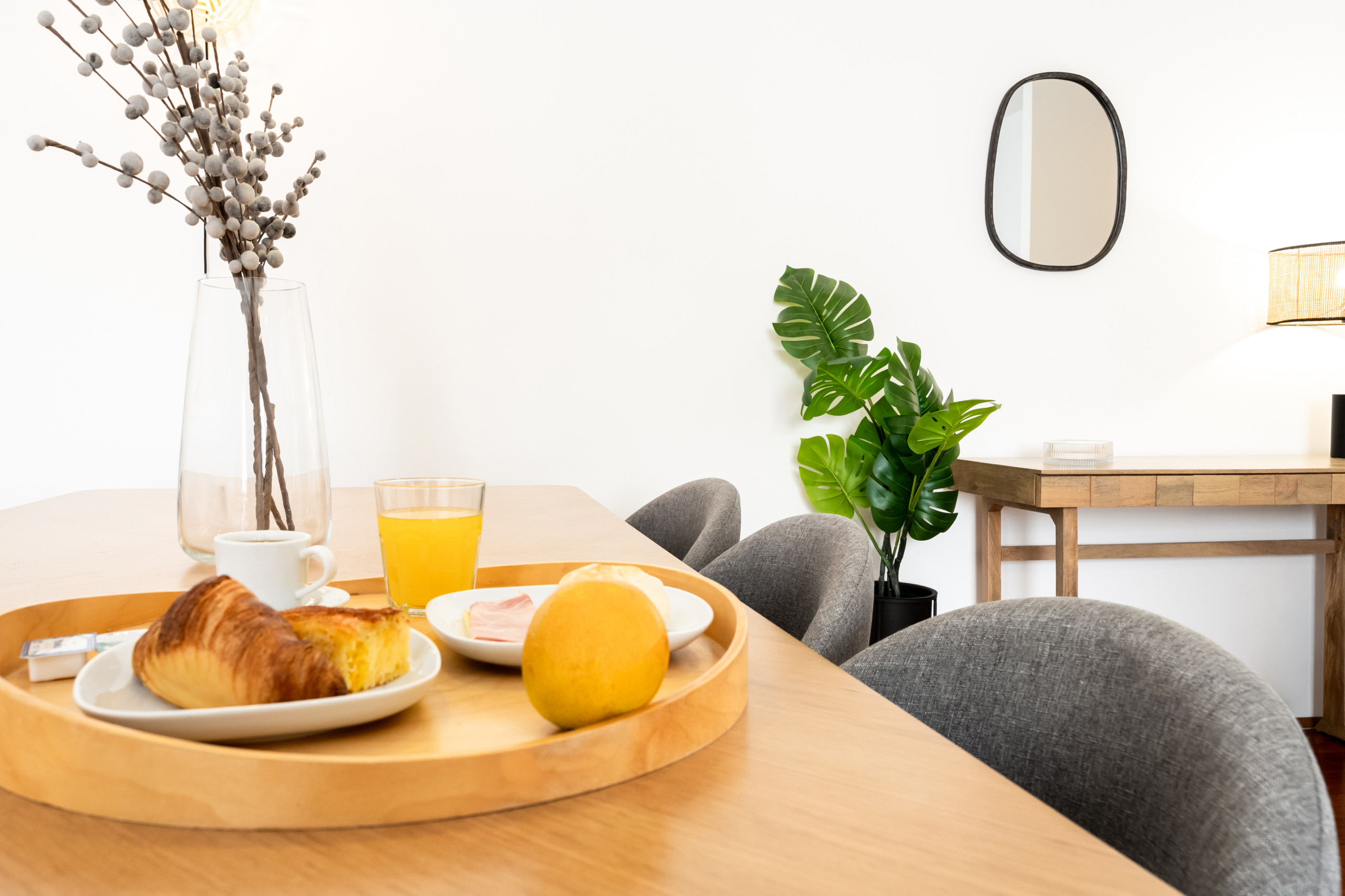 Breakfast : € 14.00 person / nightHave a great start in your day with our delicious Breakfast (Scrambled Eggs, Bread and Croissant, Fresh Seasonal Fruit, Butter, Homemade Jam and Honey, Coffee, Milk and Fresh Orange Juice). We deliver it in your apartment at the desired time.