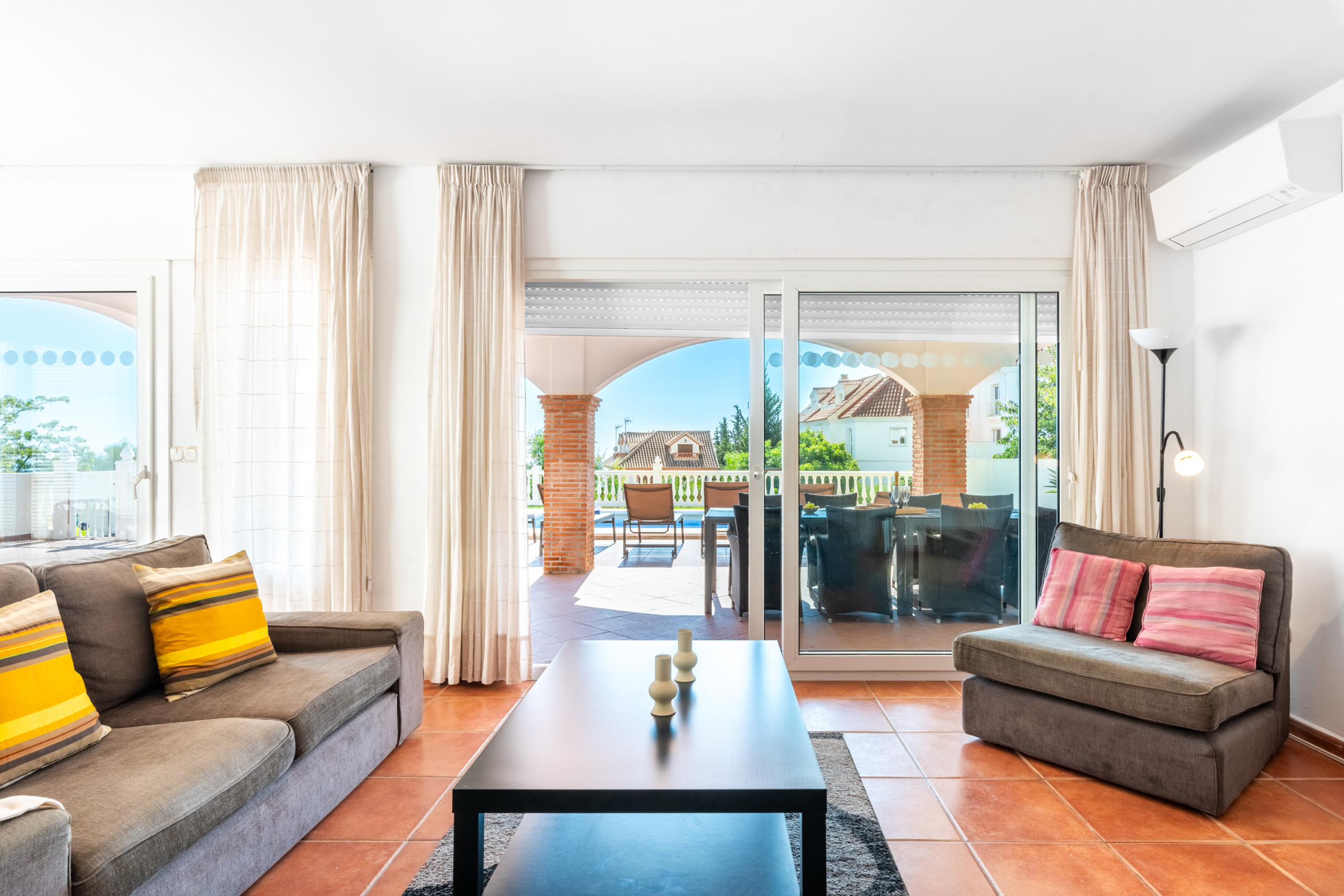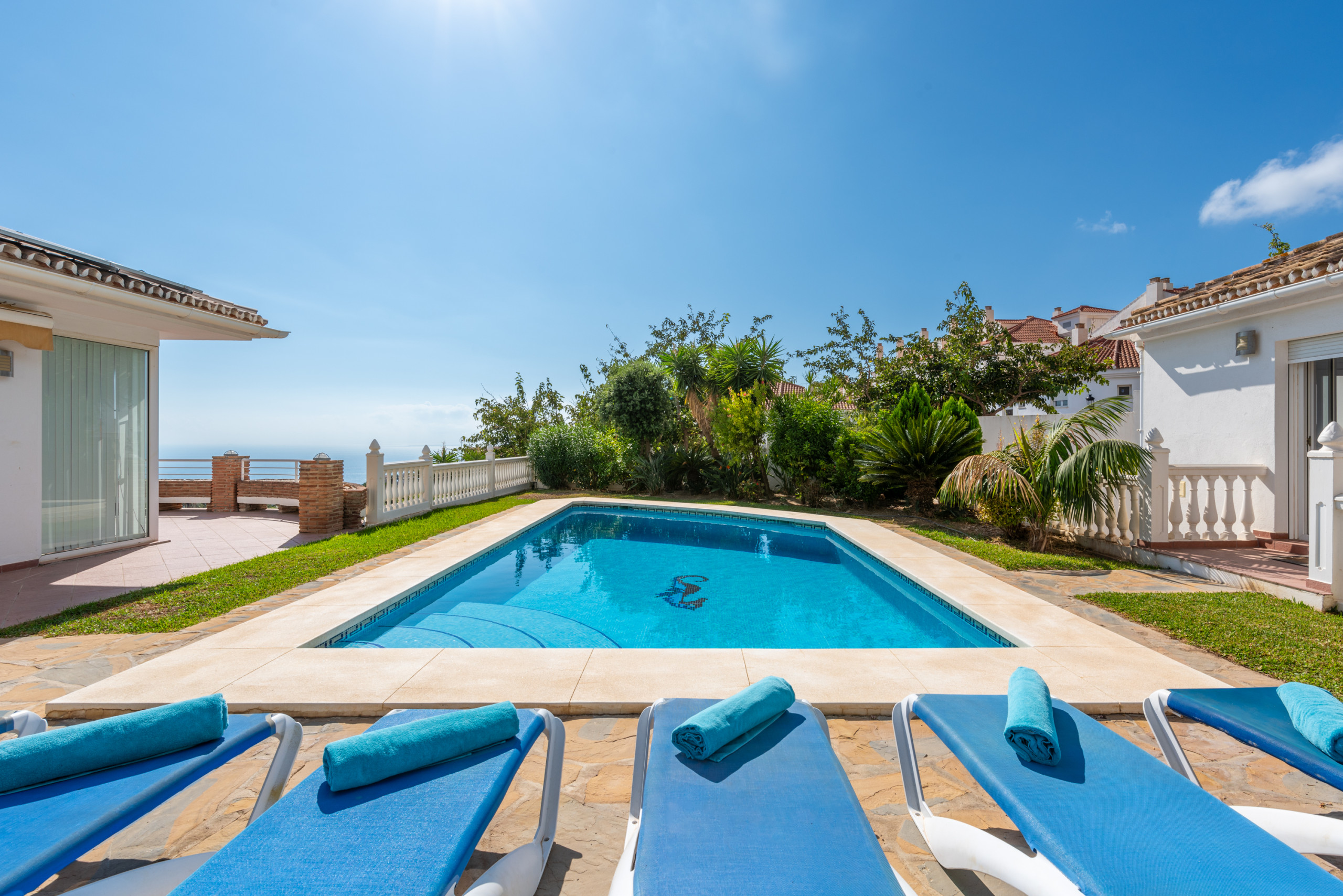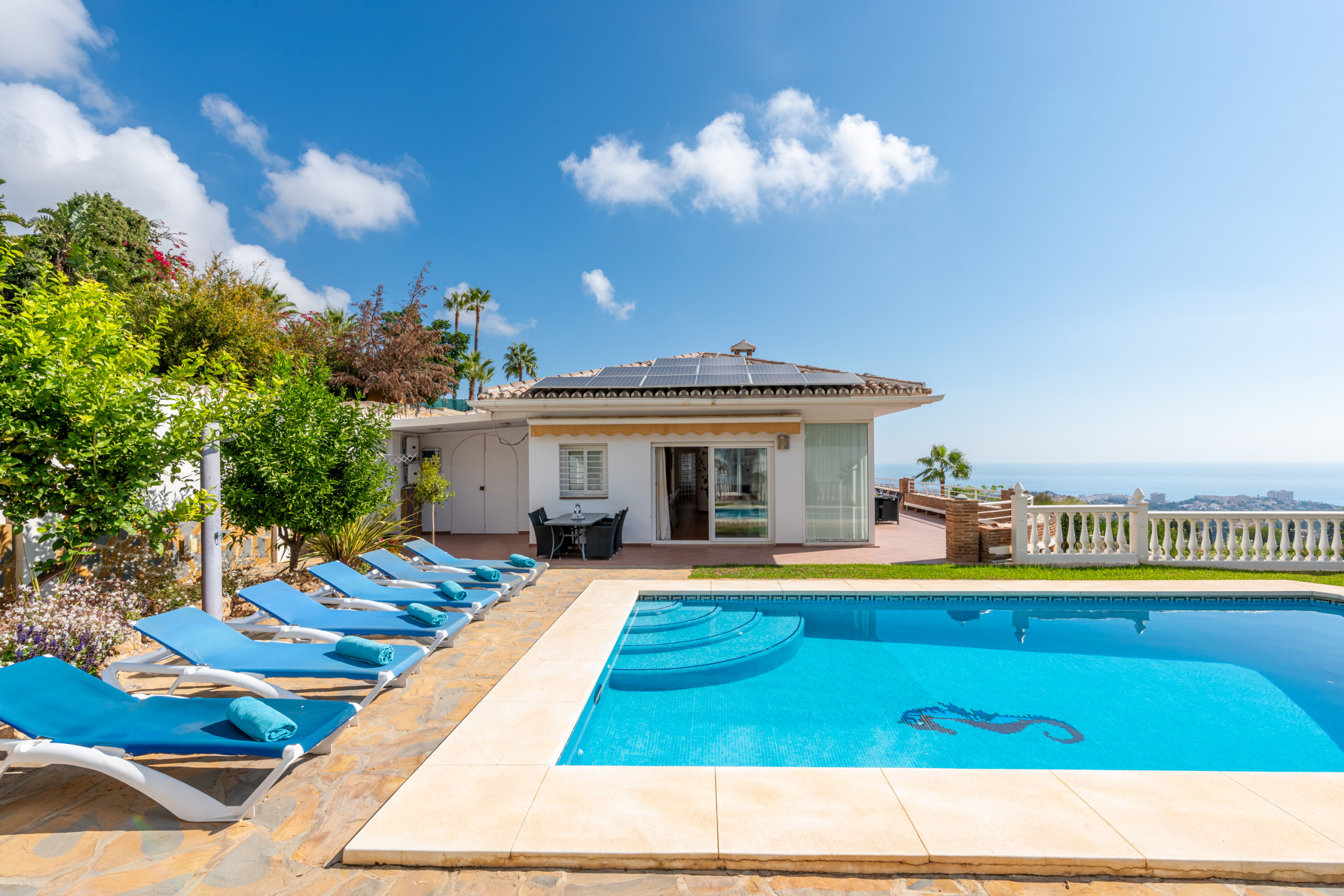 Private swimming pool, garden and covered terrace. There are plenty of loungers and patio furniture so you can all eat together. Beautiful views of Benalmadena and the Mediterranean.