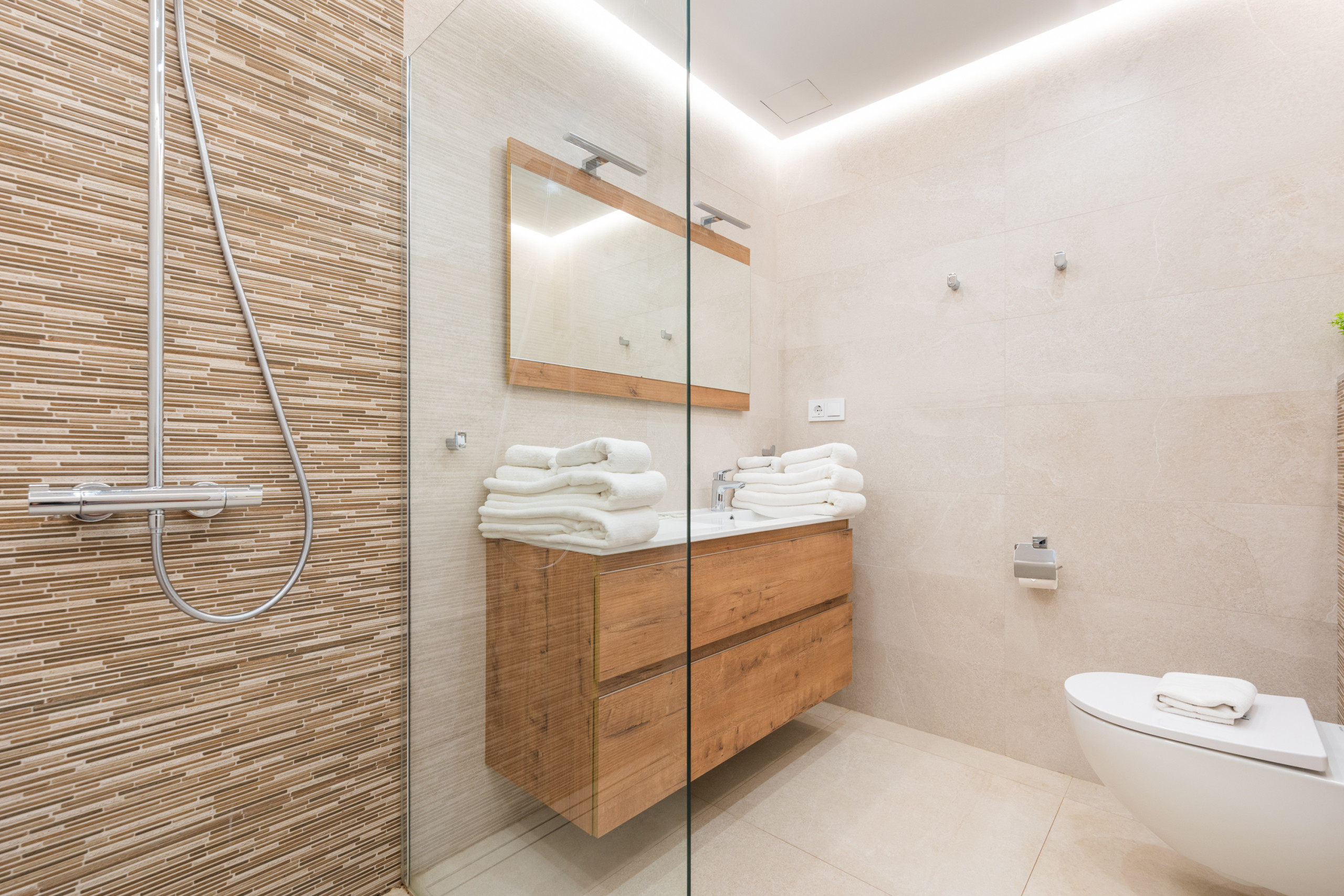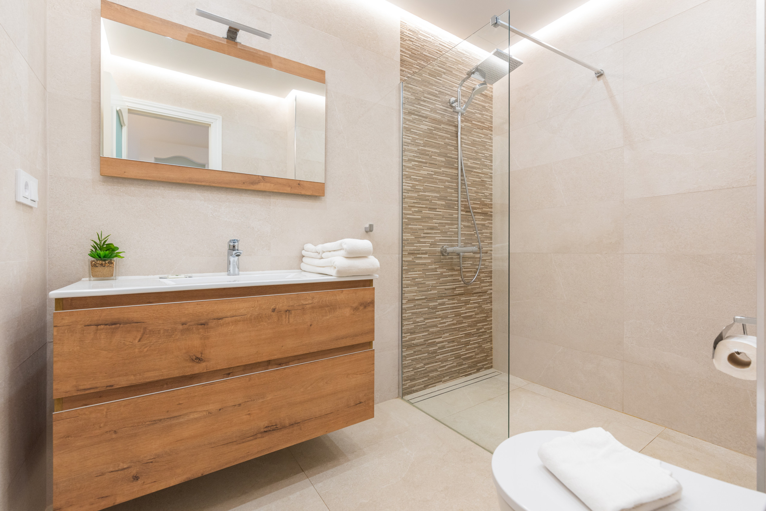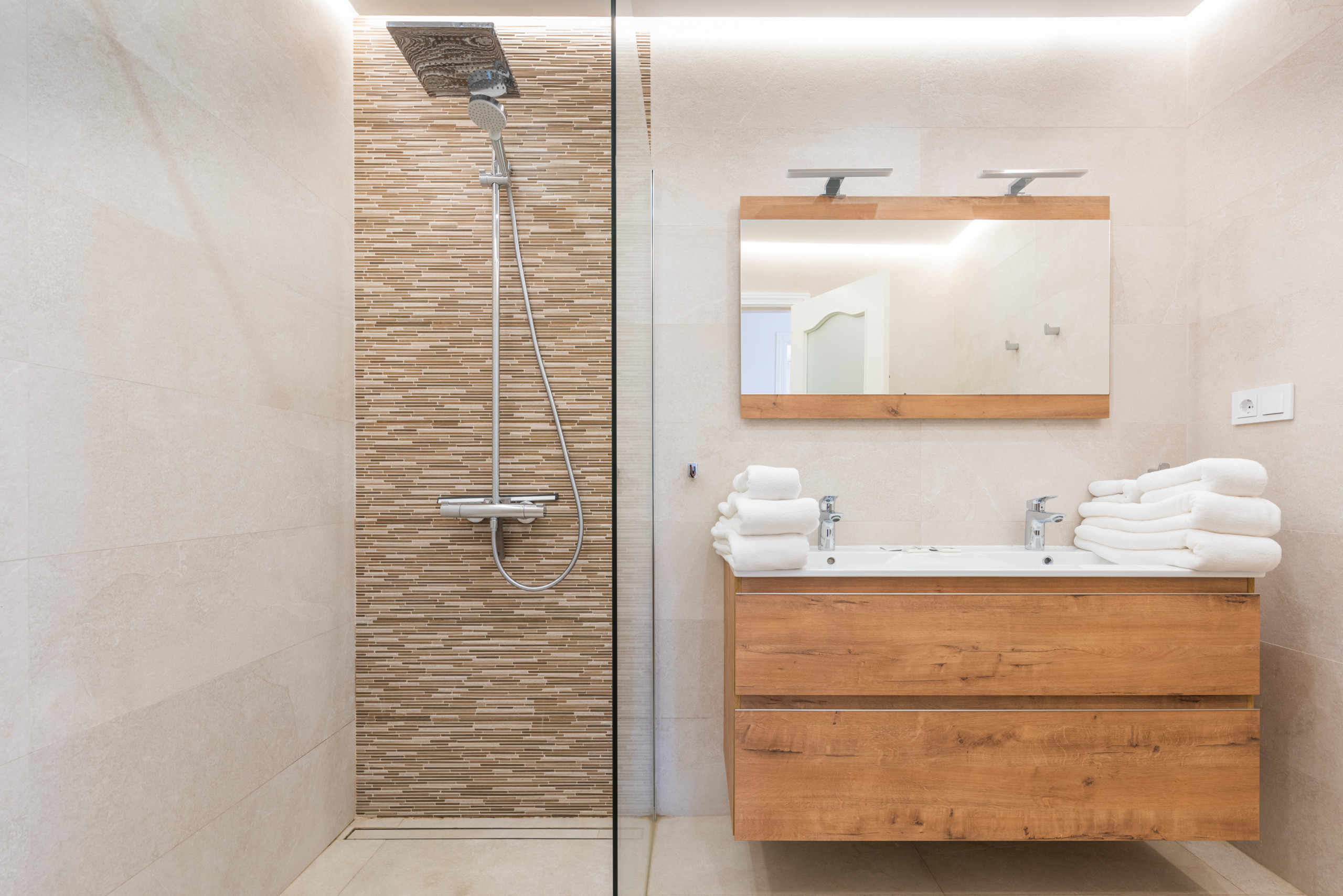 1 master bedroom with double bed, bathroom en-suite with extra large shower, wardrobe and air conditioning