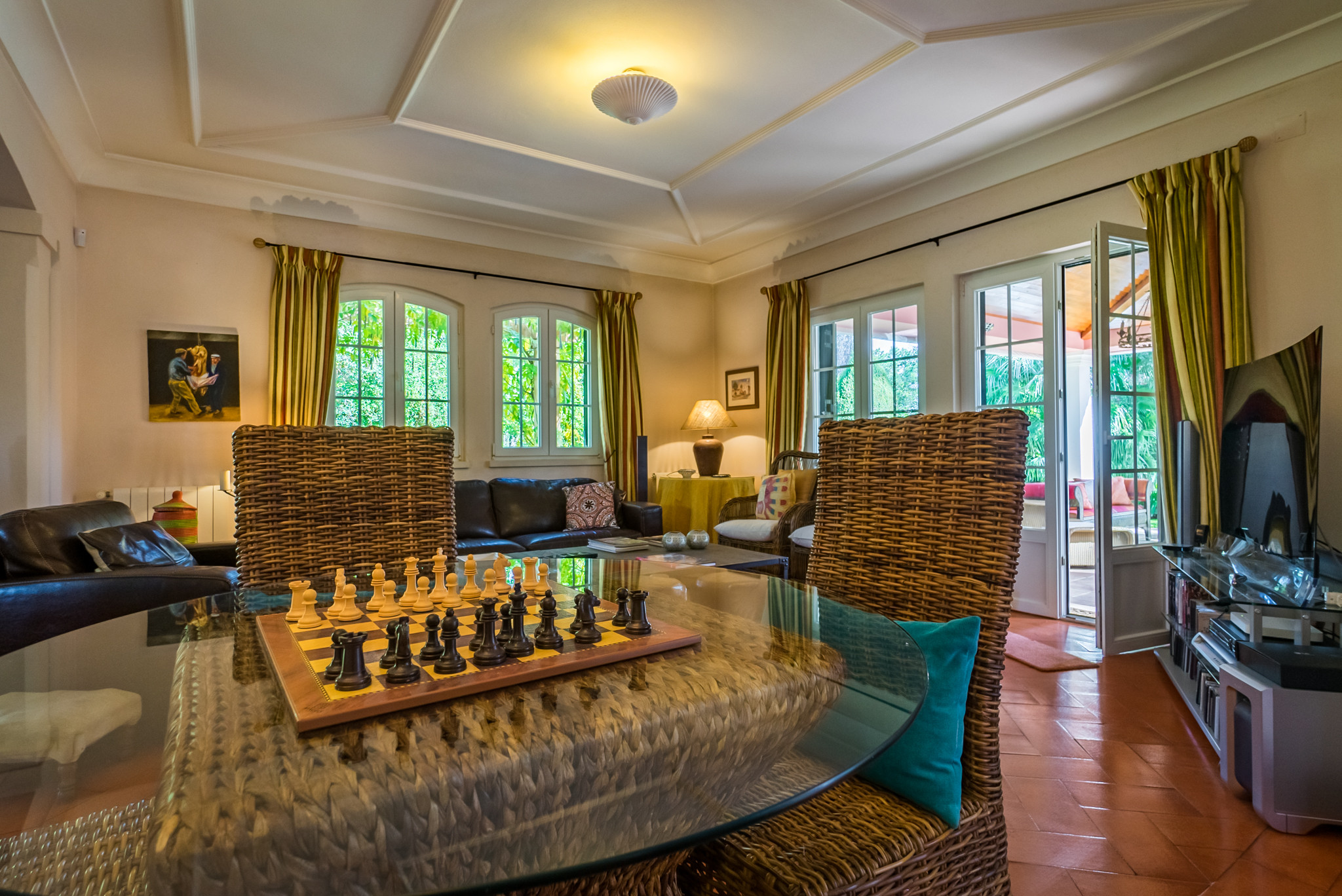 Quinta do Peru Golf Retreat is a charming private villa set in the Quinta do Peru Golf & Country Club condominium near Sesimbra and Serra da Arrábida. This is a perfect location for golfers and those looking for the privacy and tranquility of nature. Quinta do Peru Golf Retreat has 4 bedrooms, 5 bathrooms, air conditioning in the living room and one of the bedrooms and central heating. Guests who want to travel with their pet are welcome as the property is pet-friendly. You must include this request in your reservation. The house is decorated in a traditional Portuguese style that tells the story of its owners' family. Here, guests will feel safe and in a private and very comfortable environment. The house has seating areas where you can read a book, work, play chess or simply relax. The exterior invites you to enjoy nature and family life outdoors, whether in the lounge area, at the dining table or by the pool. The condominium offers Tennis and Golf lessons upon reservation. The property is also perfect for health and wellness retreats and corporate events. Events can be authorized upon prior request and an additional cost will apply.
